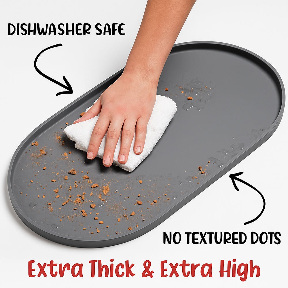 EFFECTIVE: Super high and thick outer lip (edge) keeps all spilled food and water splashes contained on the pet food mat and away from your floor. Silicone is naturally 100% waterproof. Clean lines and multiple color options allows it to blend seamlessly with any décor.